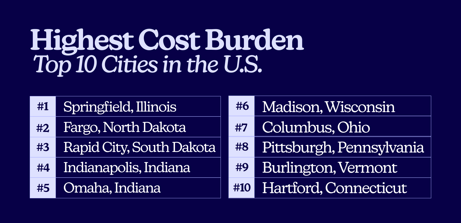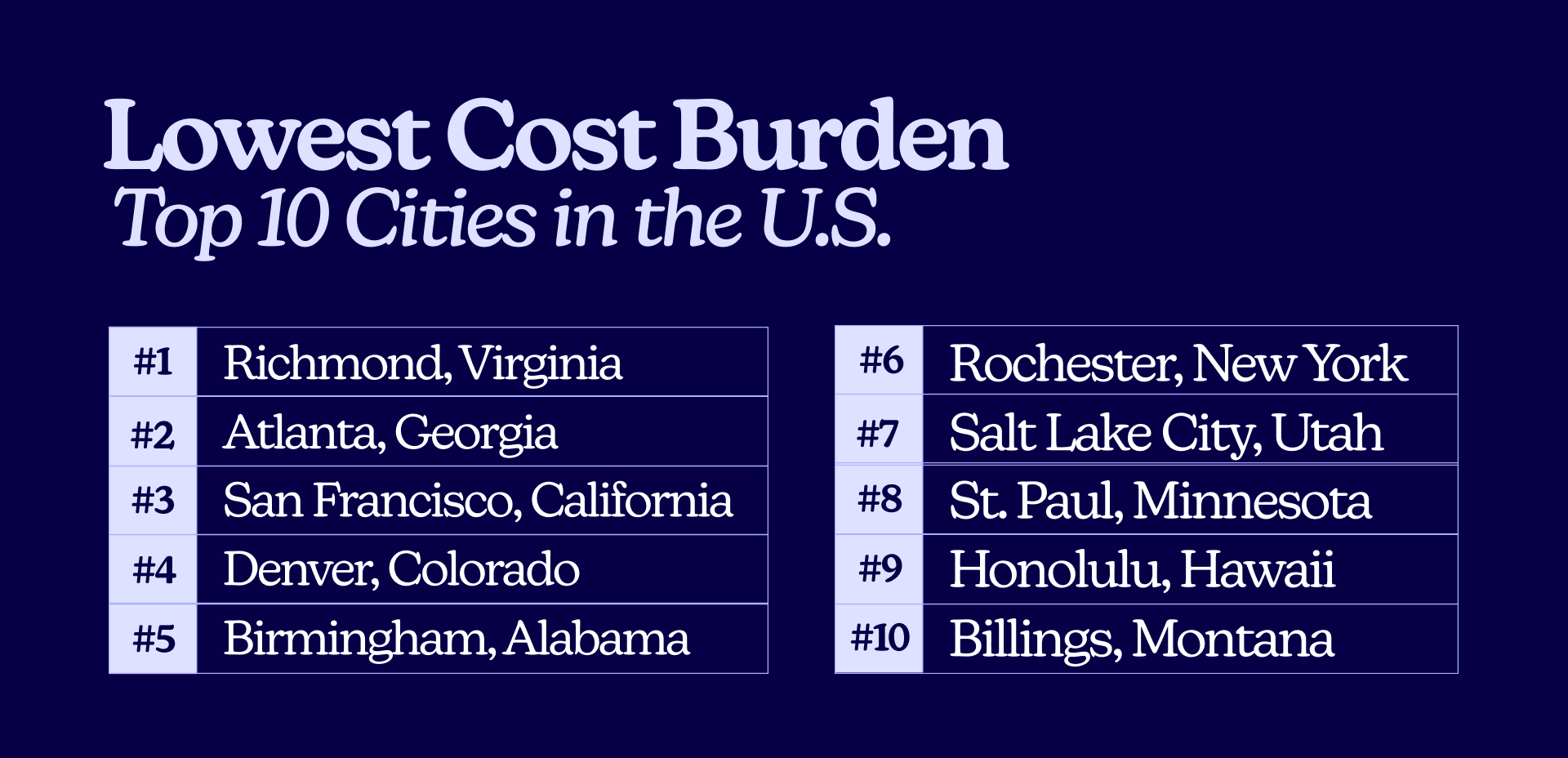 Top 10 states with the lowest cost burden