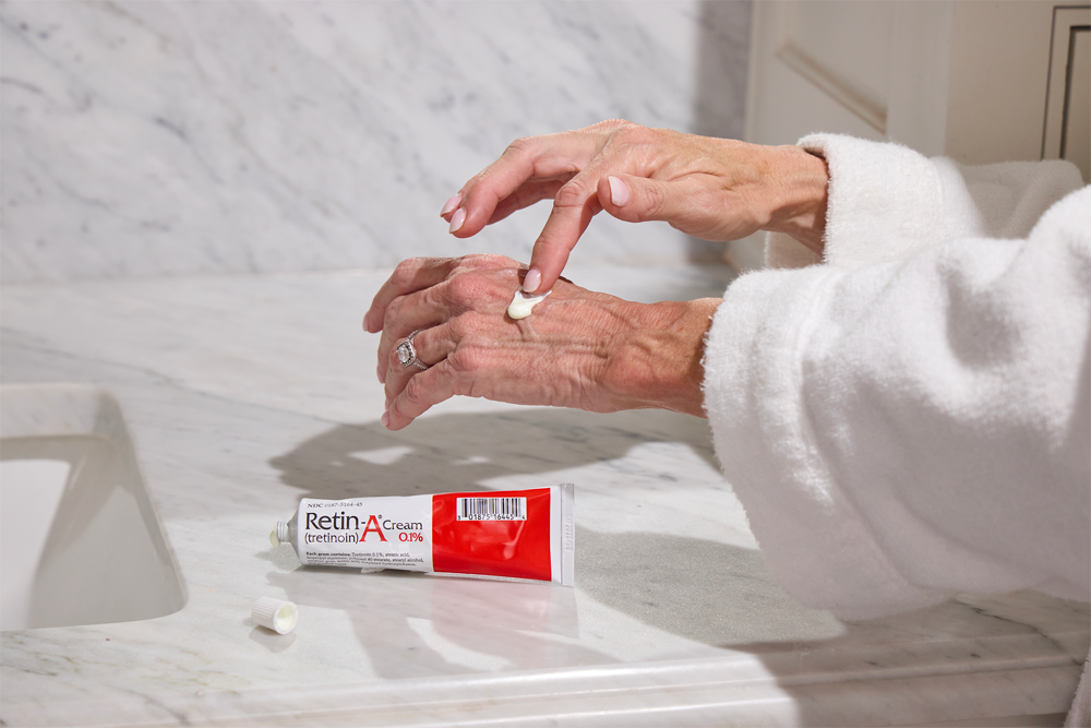 A woman applying prescribed Retin-A (tretinoin) to her hands.